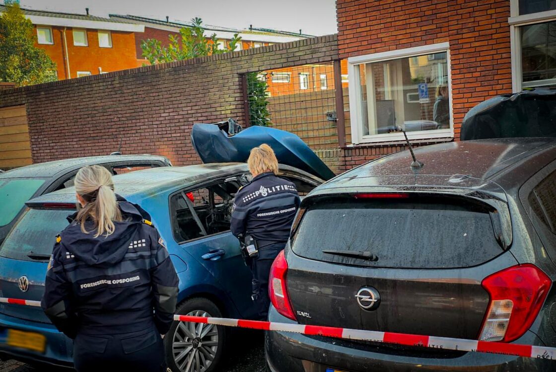PAPENDRECHT – In de nacht van zaterdag op zondag 17 januari zijn rond 02.00 uur twee auto’s in brand gevlogen aan de Alver in Papendrecht. De politie gaat uit van brandstichting en vermoedt dat de brand is ontstaan door een explosie. Door het incident liepen meerdere voertuigen in de omgeving schade op, deels aan de Kolblei. Ook een nabijgelegen woning raakte beschadigd. Er zijn geen gewonden gevallen. ( foto’s: Stolk Fotografie )