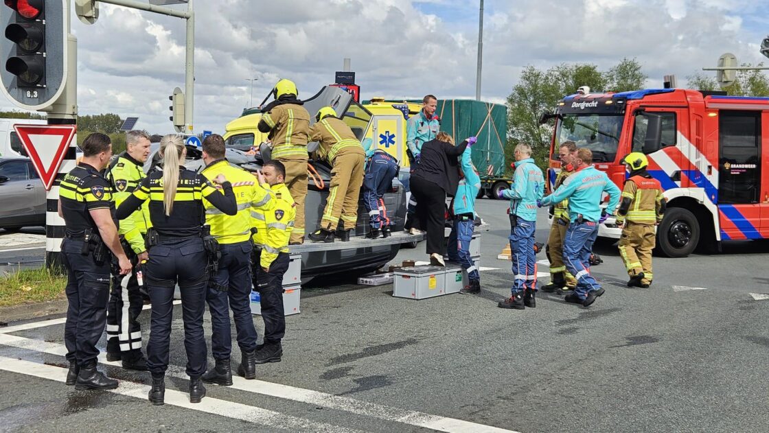 Bij een ongeval op het viaduct van de N3 over de A16 in Dordrecht zijn maandagochtend vier inzittenden uit twee auto’s ogenschijnlijk niet ernstig gewond geraakt.