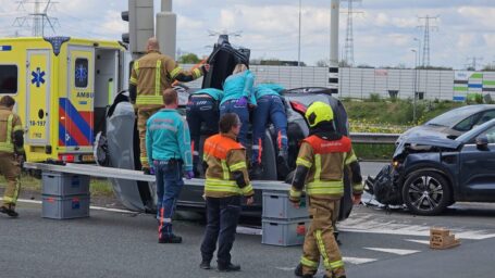 Drie inzittenden van het gekantelde voertuig werden met een speciale procedure door brandweer- en ambulancehulpverleners uit de auto getild. Een half uur na het ongeluk konden zij alle drie op eigen kracht naar de klaarstaande ambulances lopen. Ook de bestuurder van de andere auto kreeg acute zorg.