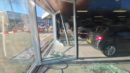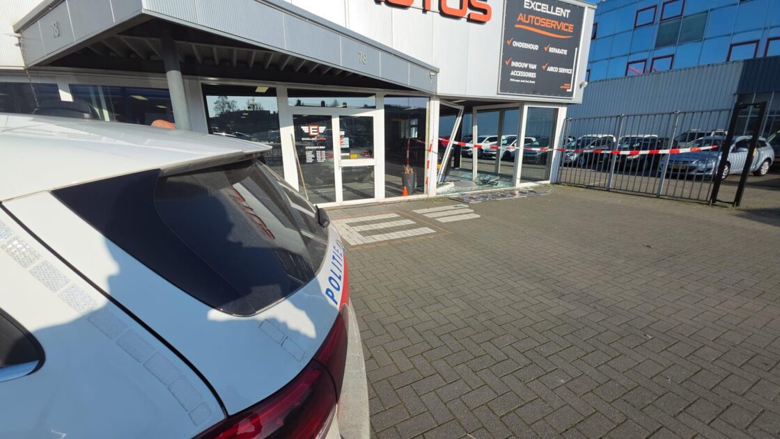 DORDRECHT – Een auto is zaterdagmiddag dwars door de pui van de showroom van Excellent Auto’s in Dordrecht gereden. Kort daarvoor was het voertuig in botsing gekomen met een lijnbus. De oorzaak van de aanrijding is nog onbekend. Het ongeval vond rond 12.00 uur plaats op de Merwedestraat. De schade aan de lijnbus bleef beperkt. Het ongeluk gebeurde op de rijbaan in de richting van de stad. ( Foto’s: Stolk Fotografie )