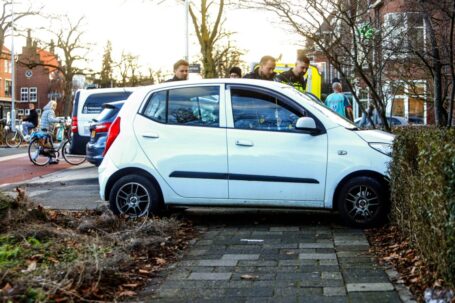 DORDRECHT – Een oudere bestuurster is vrijdagmiddag met haar auto de stoep op en de bosschages ingereden op de Krispijnseweg in Dordrecht. De vrouw, die richting de stad reed, werd tijdens de rit onwel en had haar wagen niet meer onder controle. Ze was vrij snel bij kennis en is met een ambulance naar het ziekenhuis vervoerd. Verder raakte niemand gewond. ( Foto: Stolk Fotografie )