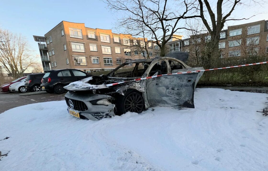 DORDRECHT – In de nacht van maandag 29 op dinsdag 30 december is de brandweer uitgerukt voor een autobrand aan de Van Spilbergenstraat in Dordrecht. Rond kwart voor twee kwam de melding binnen bij de meldkamer. Bij aankomst stond de geparkeerde auto al in lichterlaaie. (Foto’s: Stolk Fotografie)