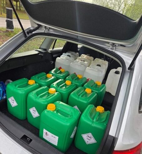 Bij de controle zagen agenten door de ruiten van het voertuig circa twintig jerrycans staan. Deze bleken gevuld met chemicaliën die vaak worden gebruikt bij het uitwassen van cocaïne. De inzittenden – een 57-jarige man uit Polen en een 49-jarige vrouw uit Oekraïne – werden direct aangehouden.