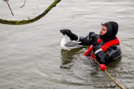 DORDRECHT – Donderdagmiddag is aan de Maasstraat een meeuw gered die in een zeer benarde positie was terechtgekomen. De vogel bleek verstrikt te zijn geraakt in achtergelaten visdraad in het water van het Wantij. ( Foto’s: Stolk Fotografie )