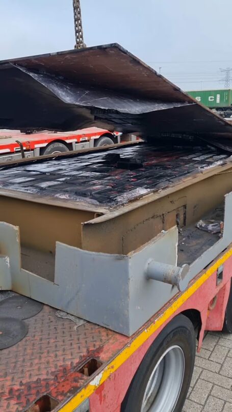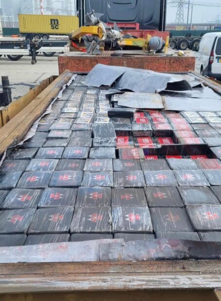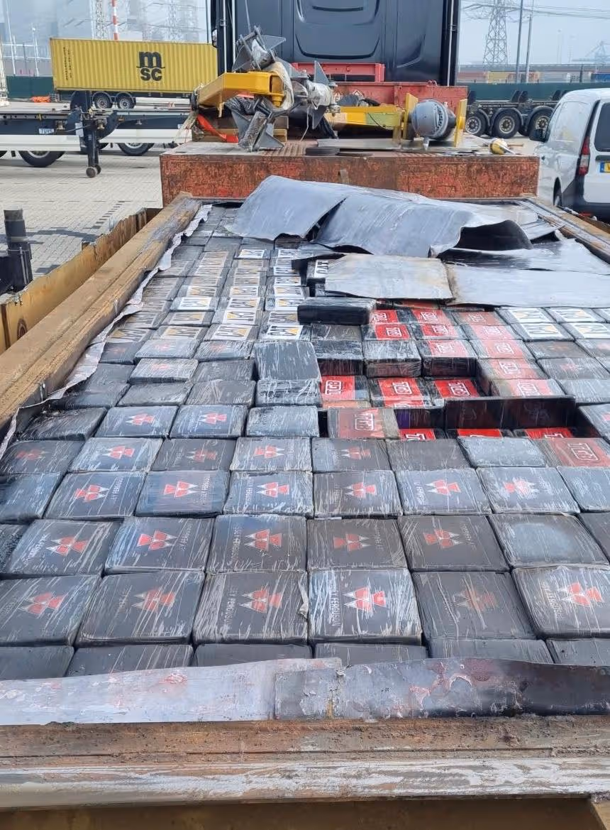 REGIO – In een lopend onderzoek van de Zeehavenpolitie Zeeland-West-Brabant naar drugshandel is vrijdag 20 maart 2026 cocaïne in beslag genomen. Het gaat in totaal om 3223 kilo harddrugs. Acht mannen zijn aangehouden en zitten vast. De Zeehavenpolitie zag sinds maandag verdachte bewegingen rondom een loods in Klundert. Een grote perscontainer werd op een vrachtwagentrailer naar binnen gereden. In de dagen daarna liepen meerdere personen de loods in en uit. ( Foto’s: Openbaar Ministerie )