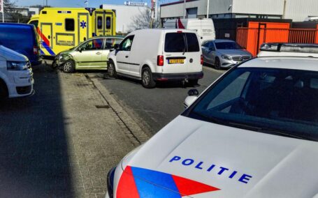 DORDRECHT – De hulpdiensten zijn maandagmiddag rond 13.41 uur gealarmeerd voor een verkeersongeval op de Planckstraat in de Dordtse Kil . Ter plaatse bleek het te gaan om een aanrijding met flinke schade aan beide voertuigen. Beide bestuurders zijn ter plekke nagekeken door het ambulancepersoneel, maar hoefden niet mee naar het ziekenhuis. ( Foto’s : Stolk Fotografie )