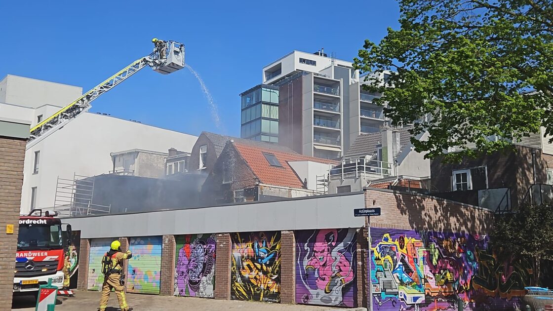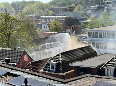 DORDRECHT – Drie woningen aan de Azijnplaats in het centrum van Dordrecht zijn dinsdagmiddag zwaar beschadigd geraakt door brand. ( Foto’s: Stolk Fotografie )