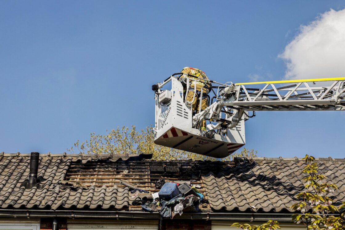 PAPENDRECHT – Op de zolder van een woning aan de Jan Luykenstraat in Papendrecht heeft dinsdagmiddag een uitslaande brand gewoed. De brandweer was snel ter plaatse en wist het vuur in korte tijd onder controle te krijgen. De melding van de brand kwam rond 15.15 uur binnen. Daarop rukte de brandweer uit met meerdere blusvoertuigen en een hoogwerker. Bij de brand kwam veel rook vrij, wat in de omgeving goed zichtbaar was. ( Foto’s: Stolk Fotografie )