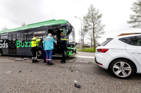 DORDRECHT –  Op het kruispunt van de Aquamarijnweg en de Toermalijnring in de Dordtse Kil heeft rond 09.24 een verkeersongeval voorgedaan tussen een lijnbus  en een personenauto. Beide voertuigen raakten daarbij flink beschadigd. ( Foto’s: Stolk Fotografie )
