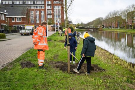 PAPENDRECHT – De gemeente Papendrecht  is weer een stukje groener geworden. Tijdens de Boomfeestdag donderdagochtend plantten 24 leerlingen van groep 7 van OBS ’t Kofschip samen met wethouder groen Jan Dirk van der Borg in totaal 18 nieuwe bomen langs de Zaling. Gewapend met scheppen hielpen de kinderen enthousiast mee; de wethouder gaf samen met twee leerlingen het startsein door de eerste boom te planten. ( Foto: Gemeente Papendrecht )