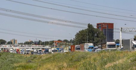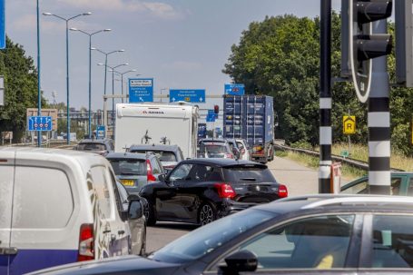 DORDRECHT – Sinds deze week is de Haringvlietbrug in beide richtingen dicht en dat zorgt tussen Dordrecht en Breda en Roosendaal voor veel files. Vrijdagmiddag was er al om 14.00 uur een vertraging van 45 minuten op de A16 richting Brabant. Door een pechgeval kwamen daar nog eens 45 minuten bij. Ook de wegen rond de A16, vooral bij de Dordtse Kil 3 en het Distripark, liepen al snel vol met automobilisten op zoek naar alternatieve routes. De afsluiting van de Haringvlietbrug duurt in totaal acht weken, dus het verkeersleed is voorlopig nog niet geleden. (Foto’s: Stolk Fotografie)