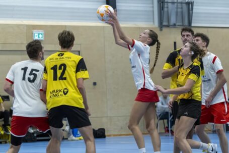 ZWIJNDRECHT – Het vlaggenschip van korfbalvereniging Albatros is nog altijd ongeslagen. In de Zwijndrechtse Develsteinhal won de ploeg de topper tegen medekoploper Fortis met 26-22 en nam daarmee de eenzame koppositie over. Albatros begon sterk aan de wedstrijd en speelde met de jonkies Anouk, Merijn en Rick in de basis. De thuisploeg nam al vroeg afstand en liep via 5-1 en 7-6 uit naar een 15-12 ruststand. Na de pauze werd het duel rommeliger en fysieker. Fortis bleef in het spoor, mede dankzij in totaal negen benutte strafworpen, maar Albatros hield het hoofd koel. De ploeg van Pieter en Timon trok de wedstrijd gecontroleerd over de streep: 26-22. ( Foto’s: ckv Albatros )