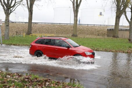 DORDRECHT – De Amstelwijckweg en een gedeelte van de Rijksstraatweg staan dinsdag aan het begin van de middag volledig onder water. De oorzaak is een lekkage. Evides is opgeroepen om de lekkage te stoppen. (Foto’s: Stolk Fotografie)