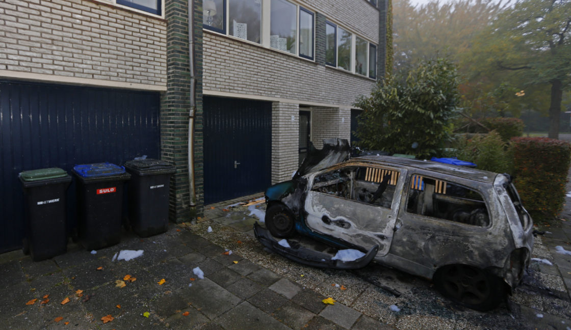 DORDRECHT – Een gezin dat woont aan de Cereslaan in Sterrenburg schrok donderdag even na middernacht wakker van een aantal knallen. Toen ze naar buiten keken, zagen ze de vlammen uit de voor hun woning geparkeerde auto slaan. Het gezin alarmeerde de brandweer en vluchtte blootvoets naar buiten uit angst dat de brand zou overslaan naar het huis. Door snel handelen van de brandweer werd dat voorkomen. De auto brandde wel compleet uit. Er bestaat een sterk vermoeden van brandstichting. (Foto’s: Thymen Stolk)