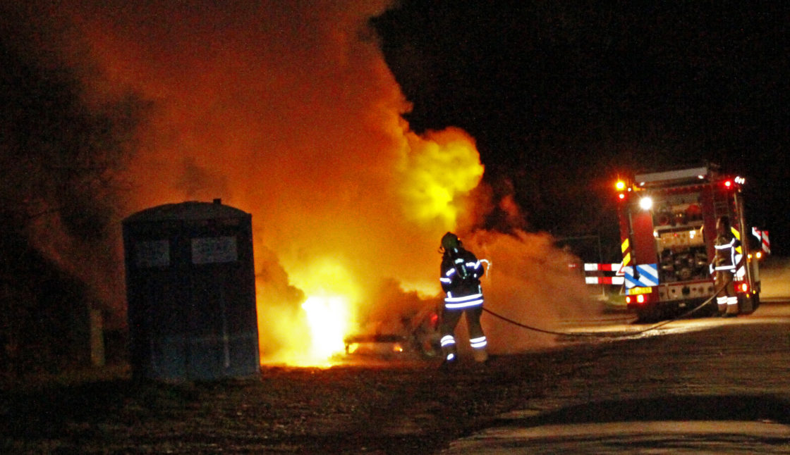 DORDRECHT – De brandweer werd even na acht uur vanavond gealarmeerd voor een autobrand aan de Oosthaven in Dordrecht. Toen de hulpdiensten ter plaatse kwamen stond de personenauto in lichterlaaie. Ondanks dat de brandweer het vuur snel onder controle had, bleef er weinig van de auto over. De politie laat zo snel mogelijk de oorzaak onderzoeken door de technische recherche. ( Foto’s : Thymen Stolk )