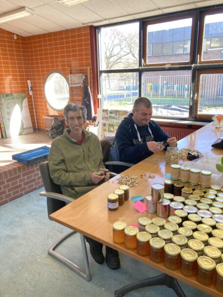 De deelnemers die via de ASVZ bij ons geplaatst zijn blinken uit in enthousiasme. Ze pakken als het ware alles aan! Inpakken, afwassen, koken, vegen, stekjes in potjes doen en praten. Vooral heel veel praten. De behoefte aan sociaal contact is groot. Prima, er is altijd wel ergens een luisterend oor van een mededeelnemer of een begeleider. De radio speelt een vrolijk deuntje op de achtergrond, geroezemoes klinkt in de werkzaal, terwijl de heerlijk geurende dampen van huisgemaakte tomatensoep uit de keuken komen. Het is gezelligheid ten top in VoedselBos BuitenZinnig!