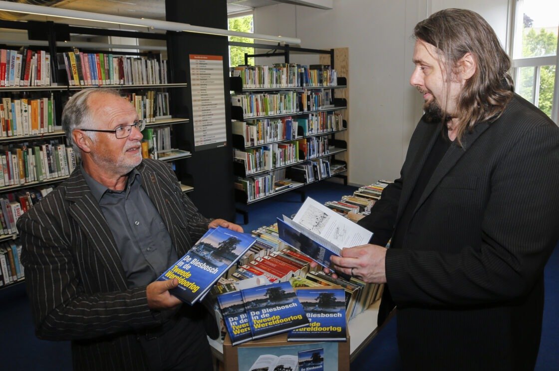 DORDRECHT – Dankzij een bijdrage van het Biesbosch Streekfonds hebben de bibliotheken AanZet, Theek5 en Altena Cultuurpunt een aantal exemplaren gekregen van het boek ‘De Biesbosch in de Tweede Wereldoorlog’. Schrijvers Leen Fijnekam (67) uit Dordrecht en Alfons van Bokhorst (56) uit Papendrecht overhandigden in de bibliotheek aan de Groenmarkt hun boek aan rayonmanager Jasper ’t Jong van de Bibliotheek AanZet.