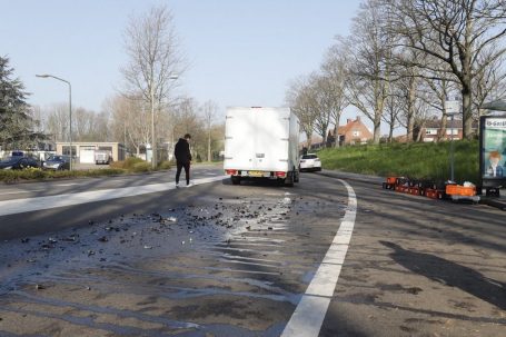 DORDRECHT – Klanten die voor vandaag online hun boodschappen hebben besteld bij Coop moeten daar mogelijk wat langer op wachten. Op de Weeskinderendijk schoot de achterdeur van een bestelwagen van de bezorgdienst van de supermarkt open. Het gevolg was een spoor van gebroken bierflesjes en andere levensmiddelen op de weg. (Foto’s: Stolk Fotografie)