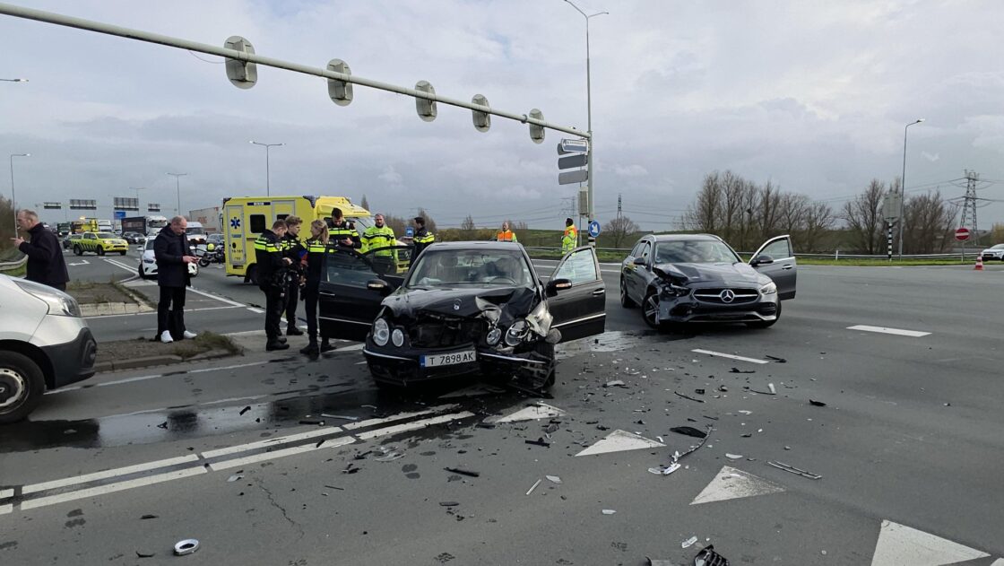 DORDRECHT – Op het kruispunt van de Laan van Europa met de N3 zijn woensdagmiddag rond 13.00 uur twee auto’s met elkaar in botsing gekomen. Hulpdiensten kwamen ter plaatse en hebben de bestuurders gecontroleerd en eerste hulp verleend. Door de aanrijding raakten beide voertuigen flink beschadigd. De auto’s zijn uiteindelijk weggetakeld. Het incident zorgde ook voor verkeershinder: op de N3 richting de aansluiting met de A16 stond een file van ruim 3 kilometer. De bestuurders hoefden na controle niet mee naar het ziekenhuis. ( Foto: Stolk Fotografie )