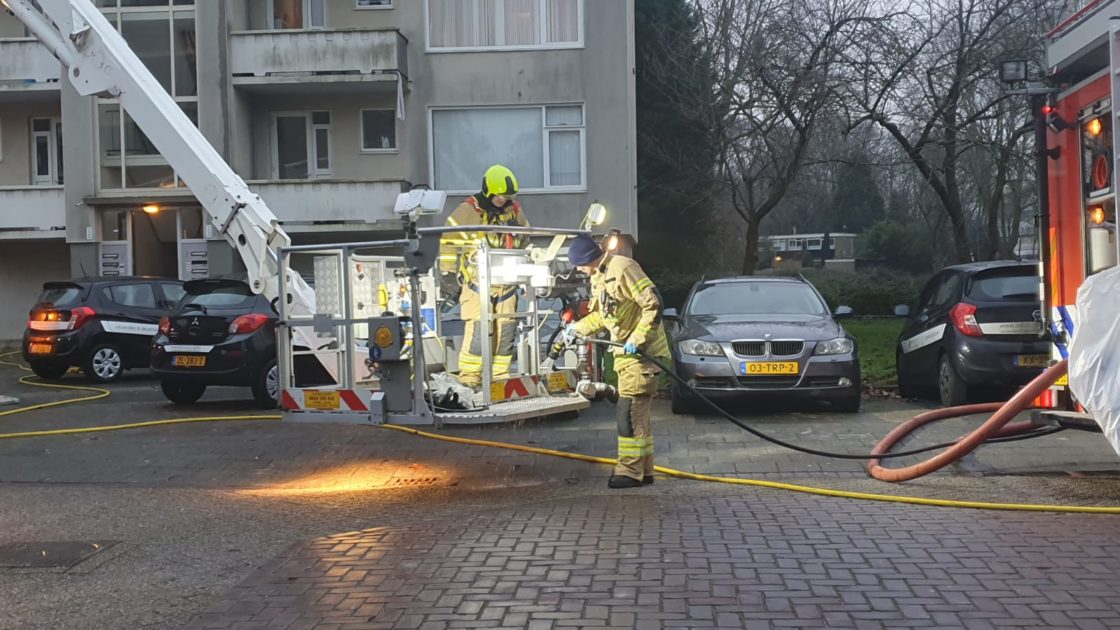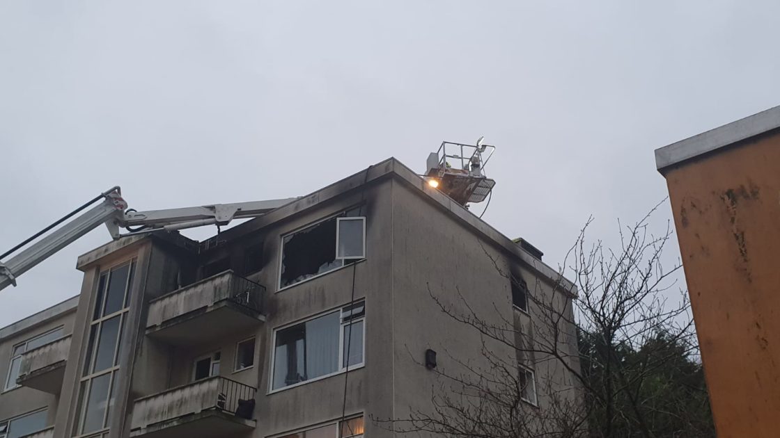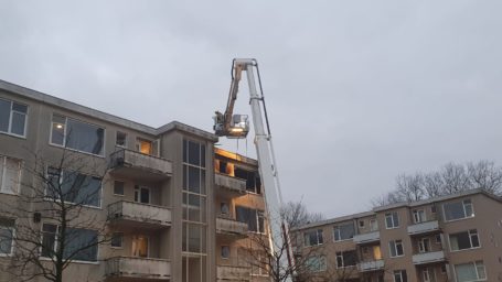 DORDRECHT – Een flatwoning aan de W.H. Vliegenstraat is vanochtend uitgebrand. Veel hulpdiensten kwamen ter plaatse. De brand ontstond in een woning op de bovenste verdieping van het gebouw. Er vielen geen gewonden. Met een hoogwerker werd een persoon van het balkon van een naastliggende woning gered. De politie is bezig met een onderzoek. (Foto’s en video: Thymen Stolk)