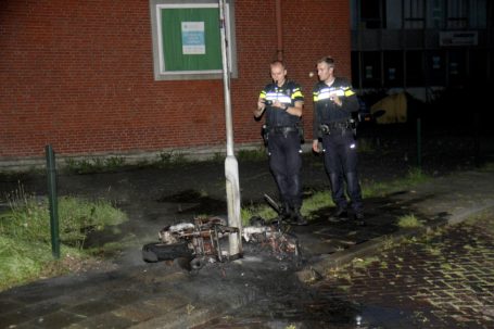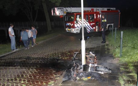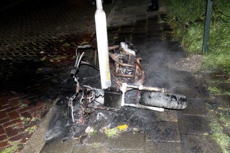 DORDRECHT – Rond half 10 zaterdagavond 13 augustus werd de brandweer gealarmeerd voor een brommer die in de brand zou staan aan de Dr L.L. Zamenhoflaan.De brandweer heeft de brand geblust. Van de brommer is helaas niks meer over. De oorzaak van de brand is niet bekend. ( Foto’s : Thymen Stolk ) .