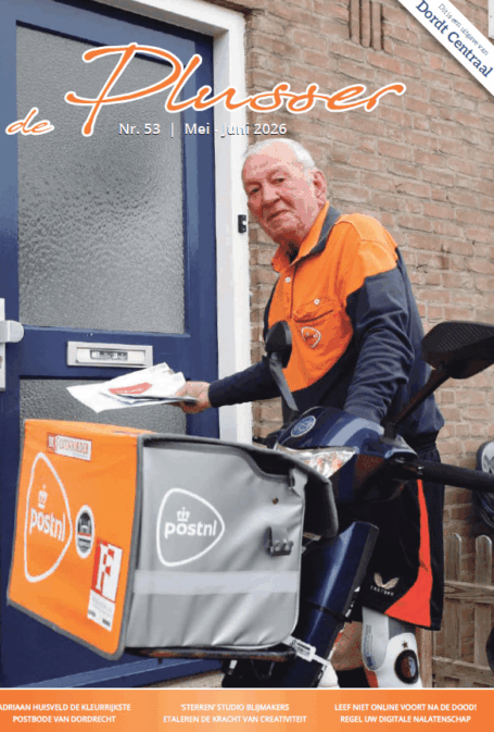 In deze editie onder meer aandacht voor de kleurrijkste postbode van Dordrecht, een boek over de kunstenaars van Studio Blijmakers en het project ANWB AutoMaatje Dordrecht. Daarnaast belangrijke info over het regelen van je ‘digitale nalatenschap’ na je overlijden en hoe ouderen zo lang mogelijk fit kunnen blijven. Afgezien van nog veel meer leuke verhalen, ook nog de vaste succesnummers zoals de Pubquiz, Winkels van Weleer, Caty’s Column en Toen & Nu.