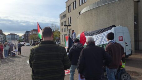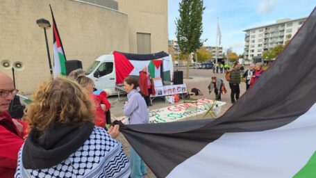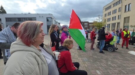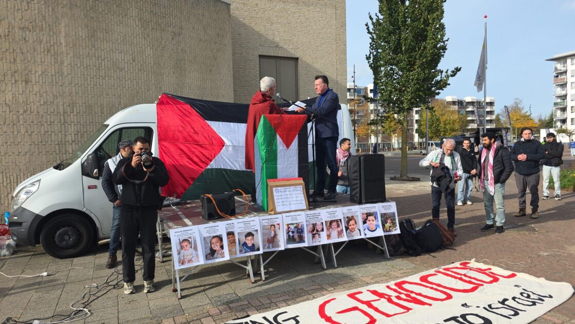 PAPENDRECHT – Zaterdagmiddag kwamen enkele tientallen actievoerders bijeen in Papendrecht om hun onvrede te uiten over de productie van onderdelen voor F-35 Lightning II-gevechtsvliegtuigen bij het plaatselijke bedrijf GKN Fokker. Volgens de demonstranten belanden deze onderdelen via de Verenigde Staten uiteindelijk in Israël. ( Foto’s en Video: Stolk Fotografie )