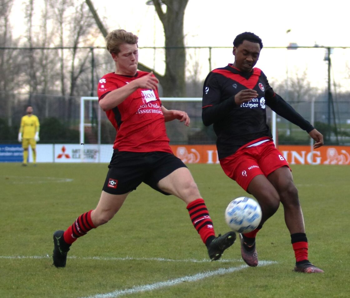 PAPENDRECHT – Papendrecht begon op zaterdagmiddag 31 januari sterk aan de wedstrijd tegen Nieuwerkerk en kreeg al binnen vijf minuten twee goede kansen. Na gemiste mogelijkheden was het na zeven minuten alsnog raak: Sebastiao Quiavuazoa rondde een fraaie aanval van dichtbij af. Papendrecht bleef domineren en liep via goals van Jarden van Ek en Lorenzo van Wijk binnen 17 minuten uit naar 3-0. ( Foto’s: Edwin Schreurs )