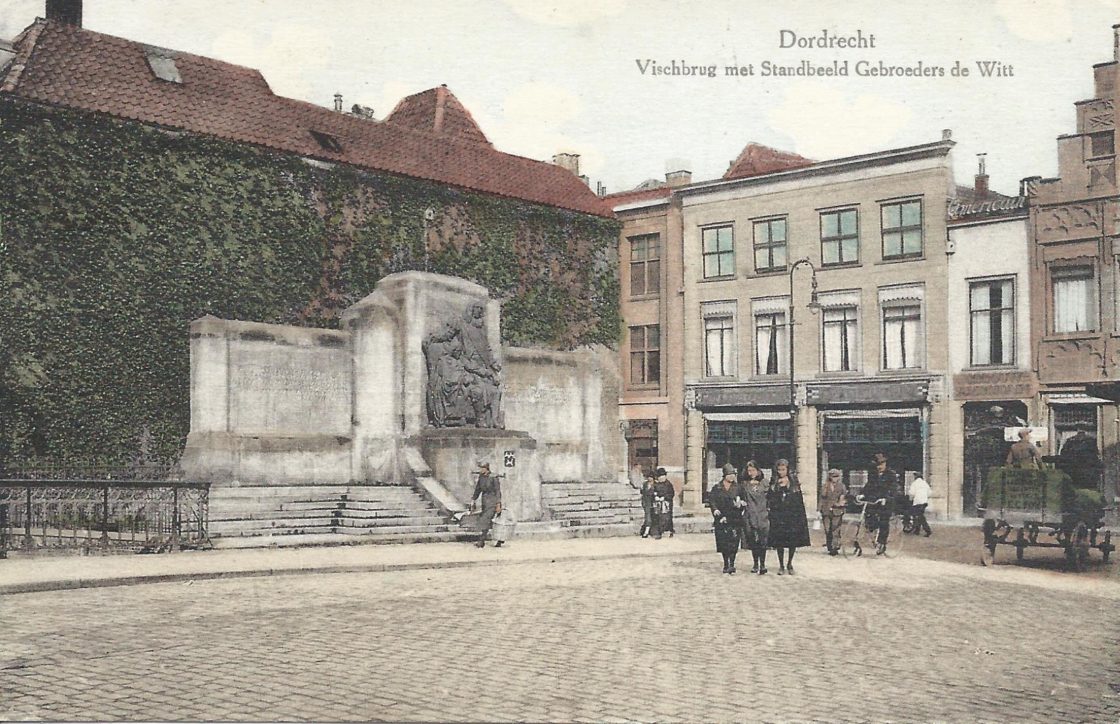 DORDRECHT – In de rubriek Dordt in Beeld Uitgelicht lichten Bram en Ria Broekhoven iedere laatste vrijdag van de maand in Dordt Centraal een foto of briefkaart uit hun imposante collectie historisch beeld van Dordrecht. Deze maand richten ze, inspelend op de actualiteit, de spotlights op het standbeeld van Johan en Cornelis de Witt op de Visbrug. Kijk voor veel meer beeld en informatie op www.dordtsekaart.nl.