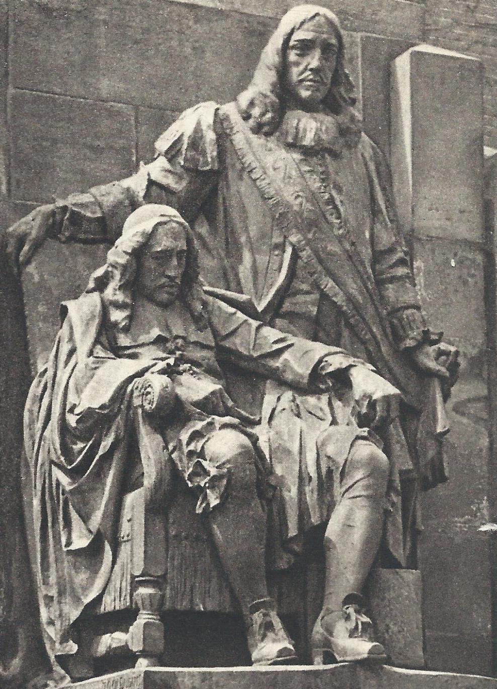 Daarnaast mag worden vastgesteld dat het beeldhouwwerk op zich ook nog eens zeer indrukwekkend te noemen is. De beeldhouwer Toon Dupuis heeft de raadpensionaris Johan de Witt zittend afgebeeld, met zijn broer Cornelis staand. Het beeld werd in brons gegoten bij de Delftse gieterij N.V. F.W. Braat. De zandstenen omlijsting werd ontworpen door architect Dirk Roosenburg en uitgevoerd bij Steenhouwerij vh Kooy in Den Haag. De middelen hiervoor zijn grotendeels uit particuliere fondsen betaald.