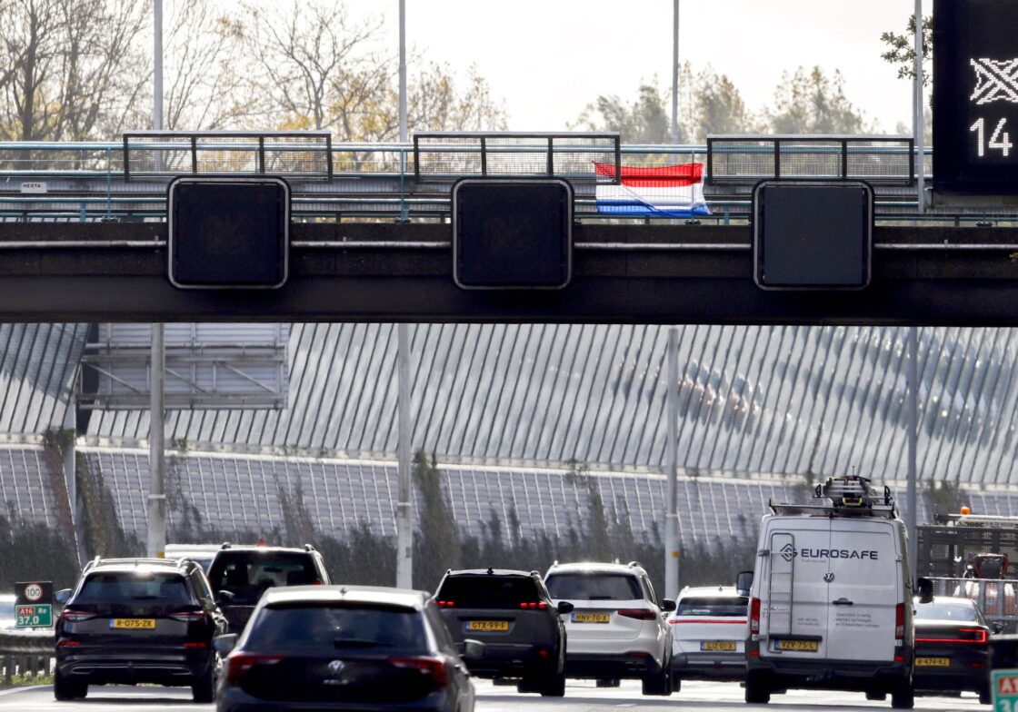 De vlag is donderdag en vrijdag zichtbaar boven de Provincialeweg, waar die is opgehangen bij het fietspad bij de N3. Ook op de A16 zwaait de Nederlandse vlag.