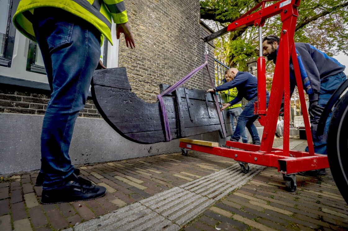 DORDRECHT – Vandaag is het eerste bronzen sculptuur geplaatst aan de gevel van het Dordrechts museum. Daarmee is een belangrijke stap gezet in de realisatie van het project. Achter de schermen is de afgelopen periode hard gewerkt aan de voorbereiding en productie van de sculpturen. ( Foto’s: Stolk Fotografie)