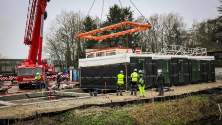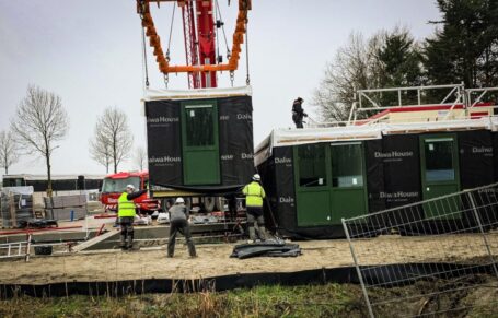DORDRECHT – Aan de Laan van Riga zijn woensdagochtend de eerste flexwoningen geplaatst. In totaal komen er 56 modulaire woningen die de komende drie jaar worden ingezet voor de opvang van Oekraïense vluchtelingen. Daarna krijgen de woningen een nieuwe bestemming als sociale huurwoningen. De flexwoningen zijn nodig omdat de opvanglocaties CrownPoint en op de Singel binnenkort gaan sluiten. Met de plaatsing van deze woningen blijft Dordrecht voldoende opvangplekken bieden. ( Foto’s: Stolk Fotografie )