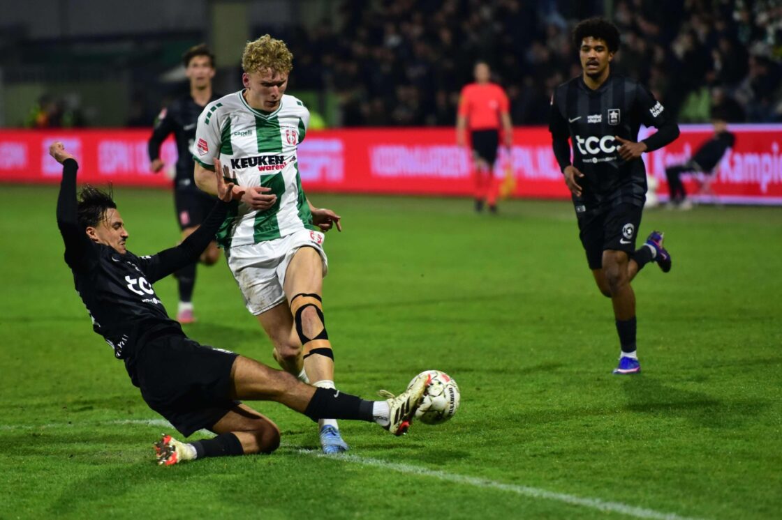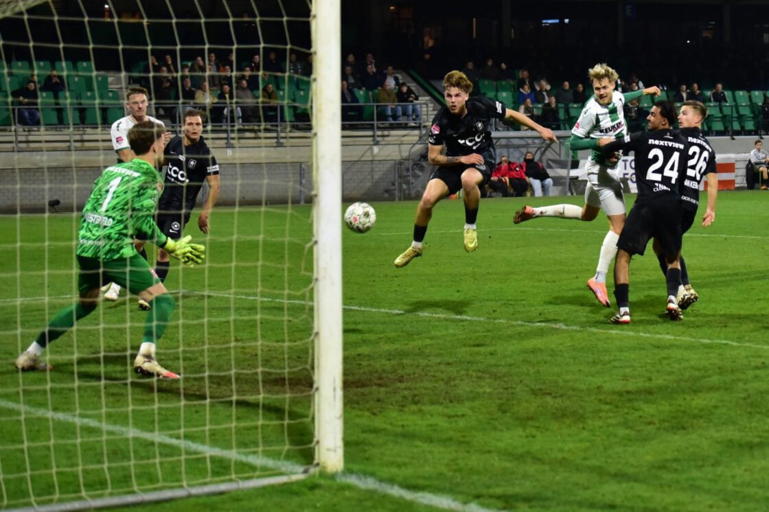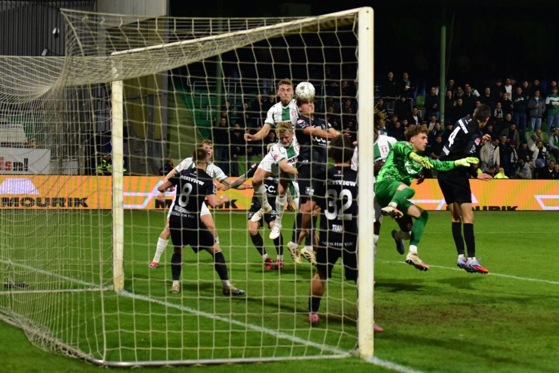 DORDRECHT – FC Dordrecht is de vierde periode begonnen met een gelijkspel. Op vrijdagavond speelden de Schapekoppen op eigen veld met 1-1 tegen MVV Maastricht. Nick Venema zorgde vlak voor rust voor de Dordtse gelijkmaker. Trainer Dirk Kuyt voerde drie wijzigingen door in zijn basiself. Jurre van Aken verving de geschorste Doyoung Yoon, Martin Vetkal kreeg de voorkeur boven Lawson Sunderland en Nicolas Rossi startte in plaats van de niet wedstrijdfitte Mica Pinto. ( Foto’s: René Kamps)