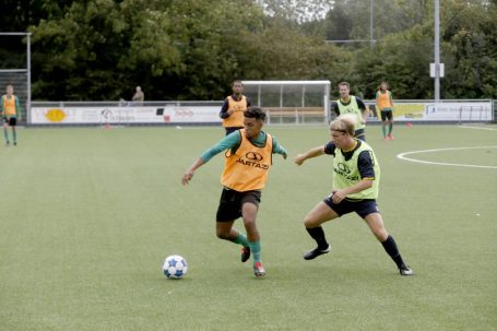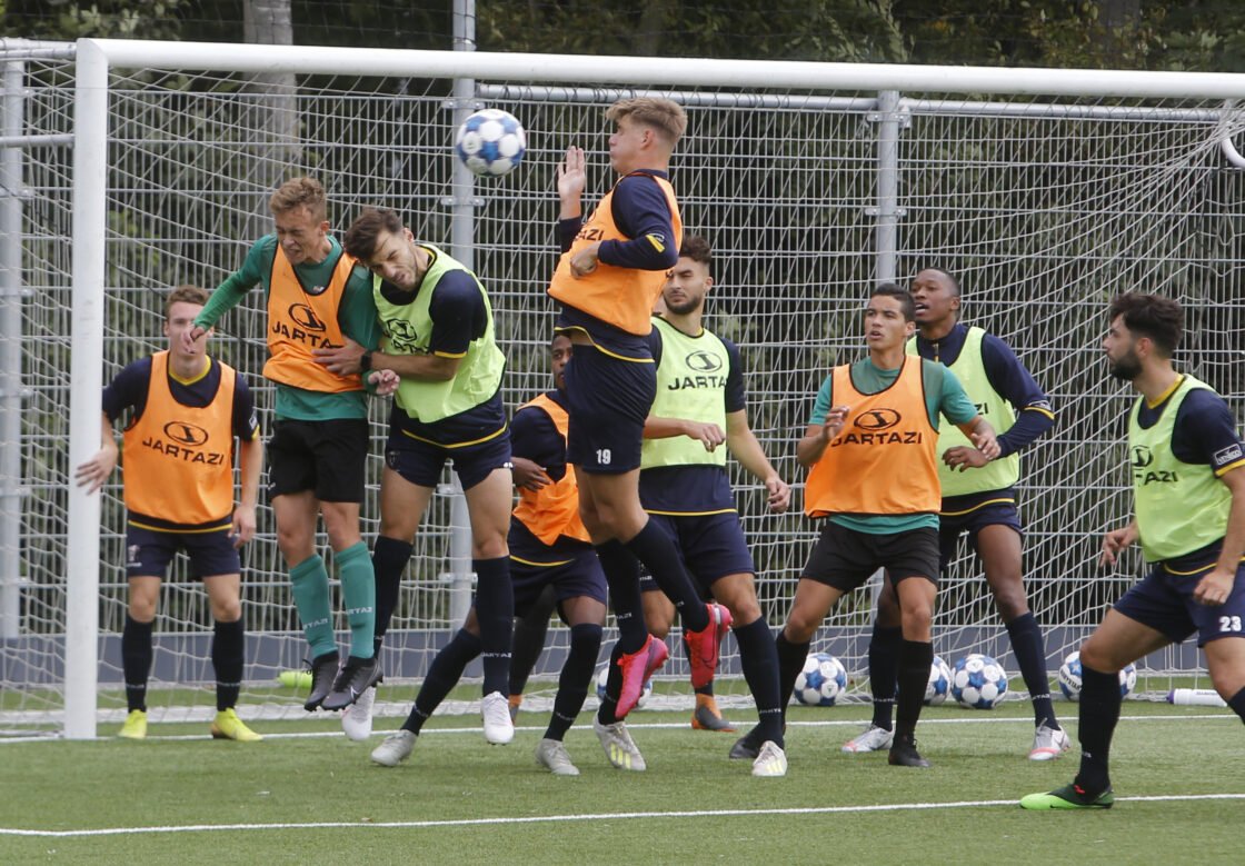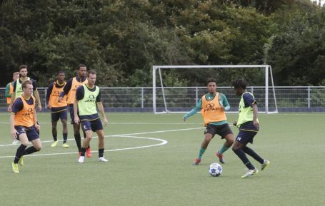 DORDRECHT – De selectie van Harry van der Ham maakt zich op voor de eerste uitwedstrijd van het seizoen. FC Dordrecht speelt zondag om 16.45 uur uit bij FC Den Bosch. Vandaag trainde Richie Musaba nog apart van de groep mee. Hij komt voor één jaar op huurbasis over van Fortuna Sittard. De wedstrijd in Den Bosch staat onder leiding van arbiter Robin Hensgens. (Foto’s: Thymen Stolk)