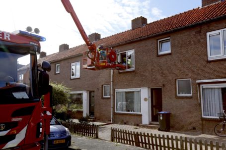 DORDRECHT – De hulpdiensten gingen donderdagmiddag met toeters en bellen naar een melding aan de Van Deysselstraat in Dubbeldam. Agenten troffen een vrouw aan voor de deur die meldde dat ze al ruim 48 uur niks had gehoord van haar 72-jarige vriendin, de bewoonster van het huis. Hulpverleners gingen met behulp van een hoogwerker via een raam de woning binnen en troffen de bewoonster liggend op de grond aan. Ze bleek twee dagen eerder uit bed te zijn gevallen. Het slachtoffer werd met spoed vervoerd naar het ziekenhuis in Rotterdam. (Foto’s: Thymen Stolk)