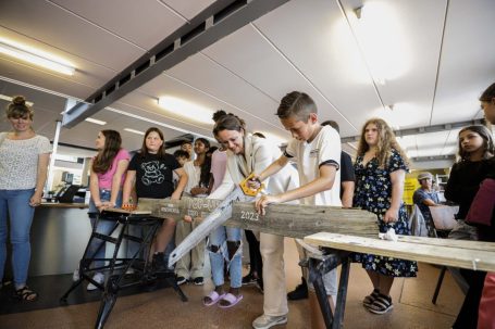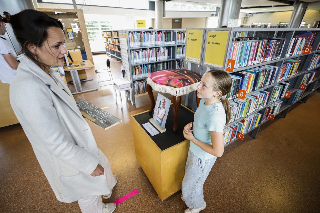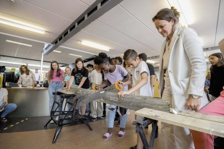 DORDRECHT – Tijdens de projectweek POP-UP Circulair hebben de leerlingen van groep 8 van de Don Boscoschool niet alleen van alles geleerd over circulariteit, ze zijn er ook mee aan de slag gegaan. De groepachters gingen een oud meubelstuk opknappen in de werkplaats van Wijk voor Wijk. Er is gezaagd, getimmerd en nagedacht over vorm en kleur. Tijdens de les hebben ze inspiratie opgedaan hoe kunstenaars omgaan met afgedankte spullen. En hebben zij met elkaar gepraat over waarom het belangrijk is om spullen niet zo maar weg te doen. De week werd afgesloten met de expositie POP-UP Circulair in Bibliotheek Crabbehof. Daar konden wijkpartners, bewoners van Dordrecht én familie de ‘nieuwe’ meubelstukken komen bewonderen en vertelden de jonge meubelmakers er meer over. De expo werd ‘zagend’ geopend door een aantal leerlingen en wethouder Chris Benschop. (Foto’s: Stolk Fotografie)