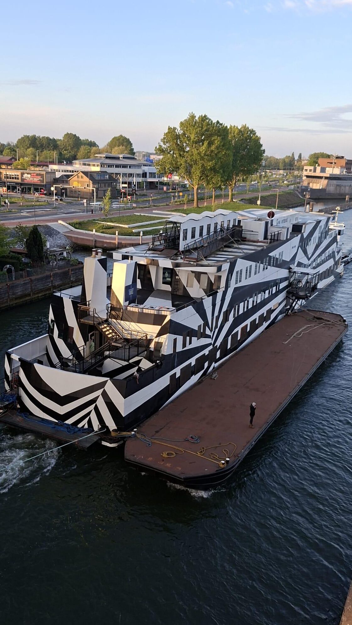 DORDRECHT/ZWIJNDRECHT – De hotelboot Sans Vitesse vertrok gisteren uit de Uilenhaven in Zwijndrecht. Via de stadsbrug werd de boot gesleept door sleepboot Gepke IV en voer hij richting Arnhem waar hij dinsdagavond aan kwam. ( Foto: Privé )