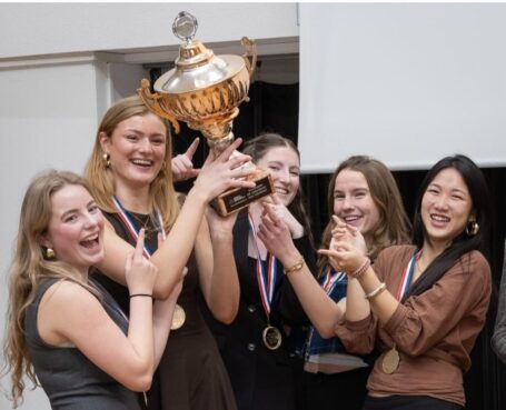 Tot op het laatste moment werd er gesleuteld aan de inhoud: op de avond voor de finale werd nog een belangrijk argument herschreven — een zet die later zelfs complimenten van de jury opleverde. Oud-leerling Isabel de Vreede, die het team begeleidde tijdens de eerste twee rondes, was diep onder de indruk van het niveau. “Als ze de finale niet zouden halen, hadden ze alsnog hun debatcarrière perfect afgesloten,” zei ze. Gelukkig kwam het zover niet: Feniks haalde de finale en won die met overtuiging.