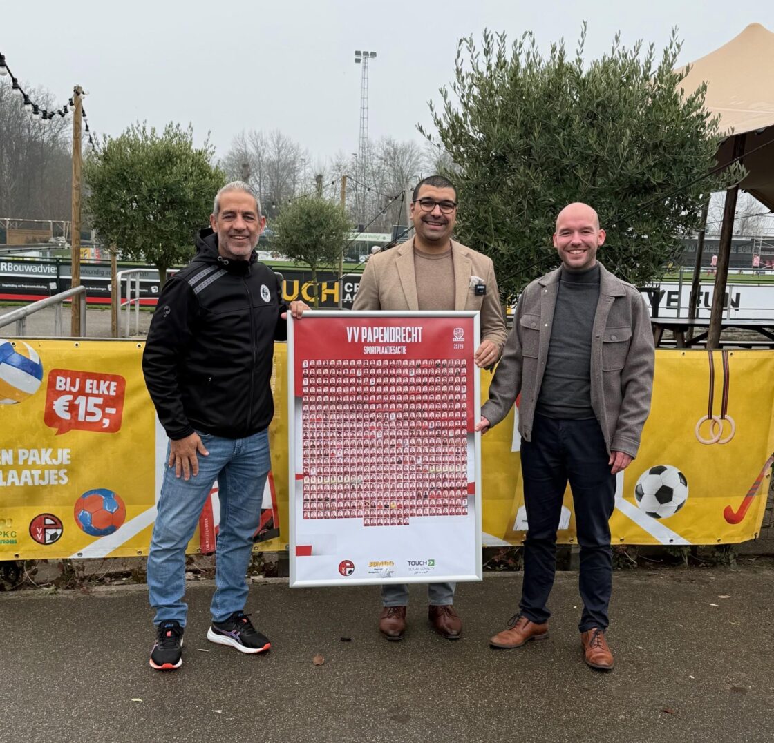 Als feestelijke afsluiting boden filiaalmanagers Najeb el Mahdaoui (Jumbo Westpolder) en Leon de Lijster (Jumbo Meentpassage) namens Jumbo een prachtige, ingelijste poster met daarop alle voetbalplaatjes van VV Papendrecht aan voorzitter Karel Spitsbaard aan. Een bijzonder aandenken en een mooie afsluiting van een geslaagde spaaractie die nog lang zal worden herinnerd.
