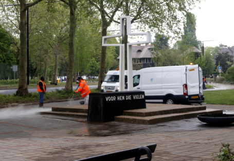 De gemeente heeft het Sumatraplein rond het herdenkingskruis aangepast. Deze week werden het monument en het plein grondig gereinigd. Ook werden de bloembakken voorzien van nieuwe beplanting. (Foto: Thymen Stolk)
