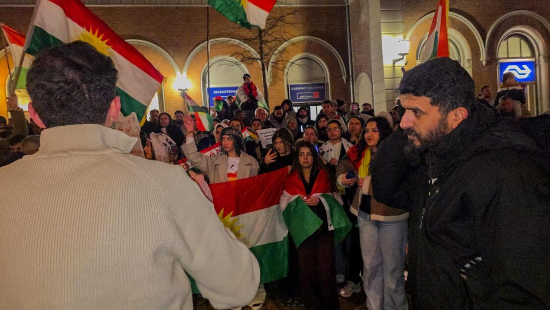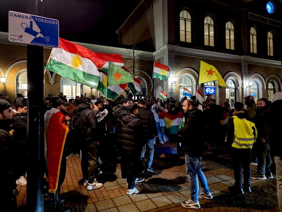 DORDRECHT – De politie was donderdagavond rond 20.00 uur met meerdere politie-eenheden  aanwezig bij een demonstratie tegen het geweld in Syrië bij Station Dordrecht. Tientallen mensen namen deel en zwaaiden onder meer met Koerdische vlaggen. Volgens de gemeente en politie verliep de demonstratie rustig. Eerder vandaag vonden er bij Station Hollands Spoor en Den Haag Centraal in Den Haag soortgelijke demonstraties plaats, waarbij eveneens veel politie werd ingezet. ( Foto’s: Stolk Fotografie )