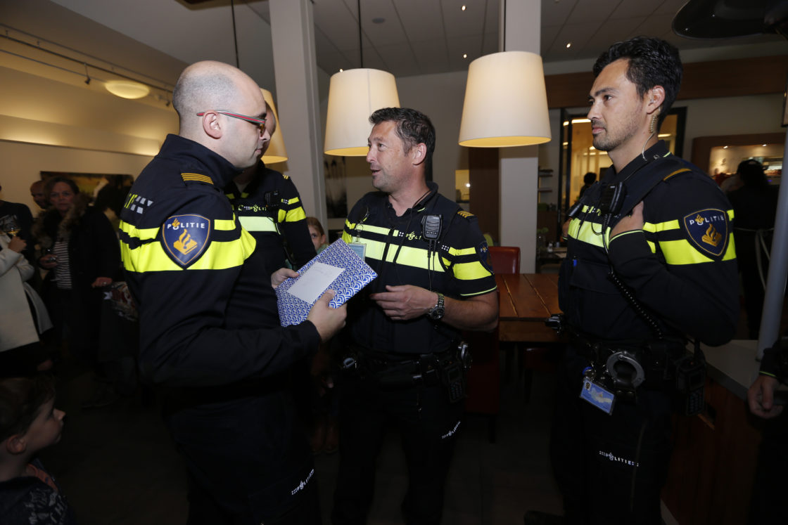 DORDRECHT – Donderdagmiddag nam ‘Twittercop’ Dirk-Jan Grootenboer afscheid van Dordrecht. Het afscheid werd hem aangeboden door collega’s van de hulpdiensten. Vanaf deze maand is hij begonnen bij de zeehavenpolitie in Rotterdam. Hij werd bekend met de tweets die hij deelde met zijn volgers over het politiewerk op straat. (Foto’s en video: Thymen Stolk)