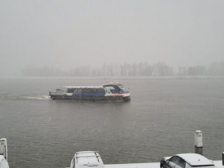Dit is ook weer zo eentje. Talrijke regen- en sneeuwbuien zijn ons de afgelopen weken ten deel gevallen. Komende nacht wordt er wederom sneeuw verwacht. Wat voor weer het echter ook is: de Waterbus blijft gewoon doorvaren!