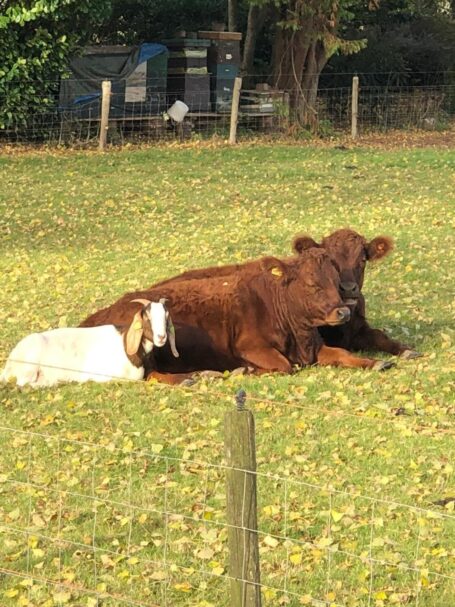 Deze koeien en geit liggen of lopen altijd bij elkaar als Els Bakker er voorbij rijdt in de Biesbosch. “Het is net vader, moeder en kind”, zegt ze erbij.