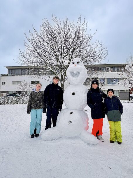 ‘Een onverwachte vrije dag van school door de vele sneeuwval bracht buurkinderen uit Dordrecht samen. Met zijn vieren gingen ze vol enthousiasme bouwen. Het plan was: een zo groot mogelijke sneeuwpop. Een voorbeeld van een kleine ‘Olaf’ (uit de film ‘Frozen’) bracht ze op het idee om een veel groter exemplaar te maken. Er moest een trap aan te pas komen om op het plein bij de Nicolaasstraat een Olaf van 2,50 meter neer te zetten. Maar het is Saar, Finn, Alina en Saifeddine gelukt!’, meldt Eva Lut, moeder van twee van de kinderen.