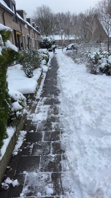 ‘Geen verplichting meer in de APV van Dordrecht. Maar zo kan het ook: netjes straatje schoongemaakt en ontdaan van de sneeuw’, laat Guus Reening weten. De straat in kwestie is het Aletta Jacobserf.