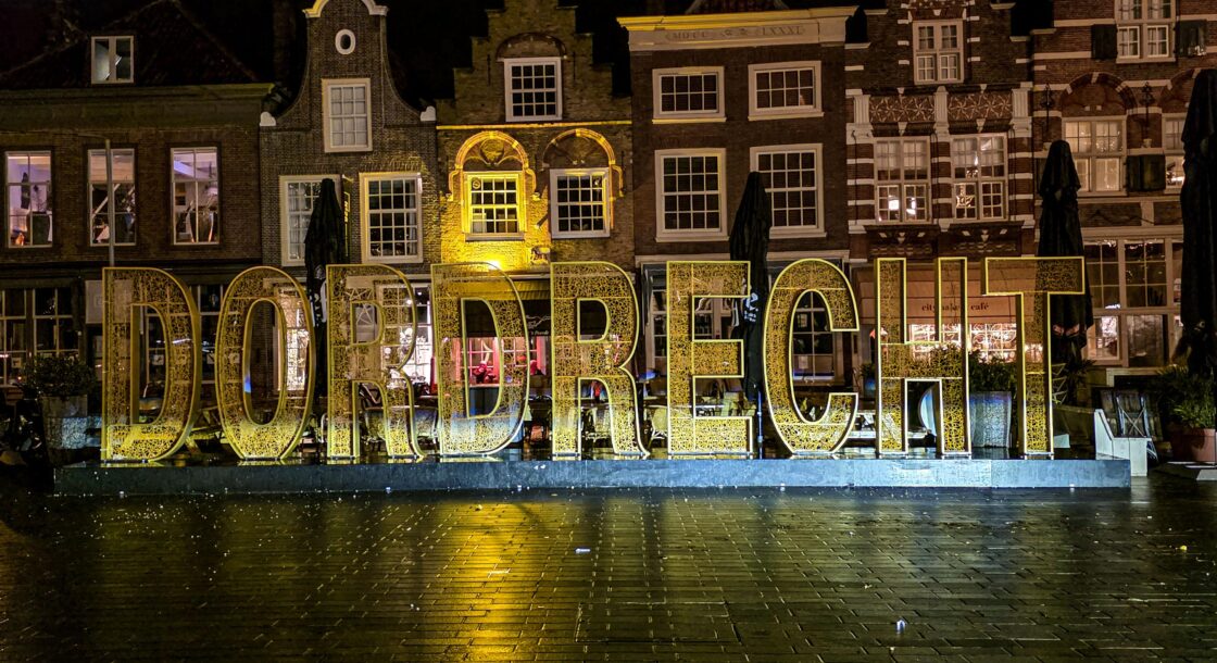 DORDRECHT – Het twaalf meter lange en twee meter hoge lichtobject met de verlichte letters ‘DORDRECHT’ staat sinds vandaag weer te stralen op het Statenplein. Voor het tweede jaar op rij vormt deze indrukwekkende eyecatcher het startpunt van de winterse sfeer in de binnenstad. (Foto’s: Stolk Fotografie )