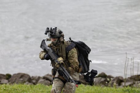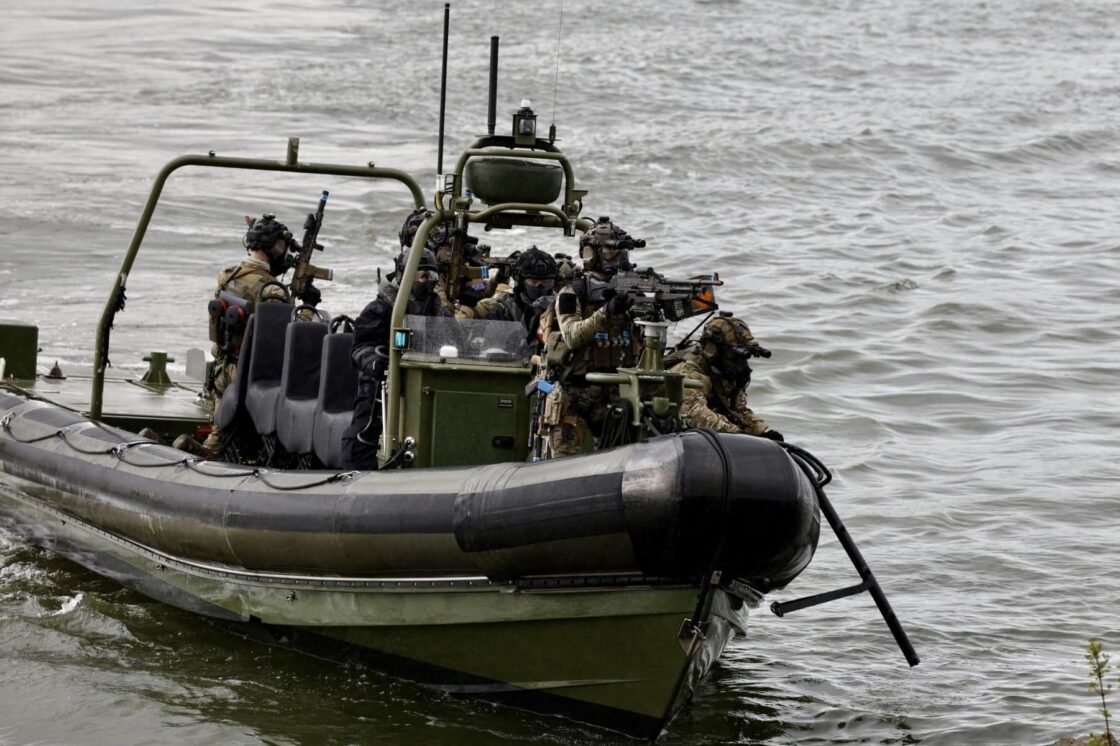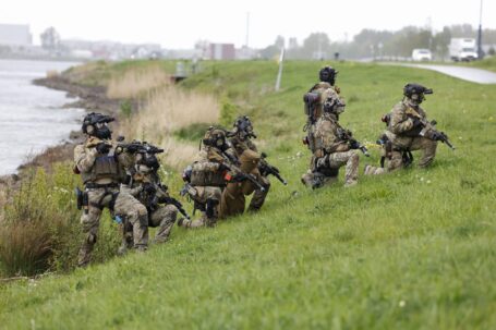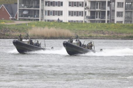 DORDRECHT – Mariniers oefenden maandagmiddag op de oevers van de Dordtse Kil een speciale inzet achter vijandelijke linies. Via het water en door de lucht kwamen ze naar hun doel, dat gelegen was in het Spinel Veiligheidscentrum. Vanuit deze oefenlocatie op bedrijventerrein Dordtse Kil klonken tijdens de inval ‘schoten’ op de binnendringende militairen. (Foto’s: Stolk Fotografie)