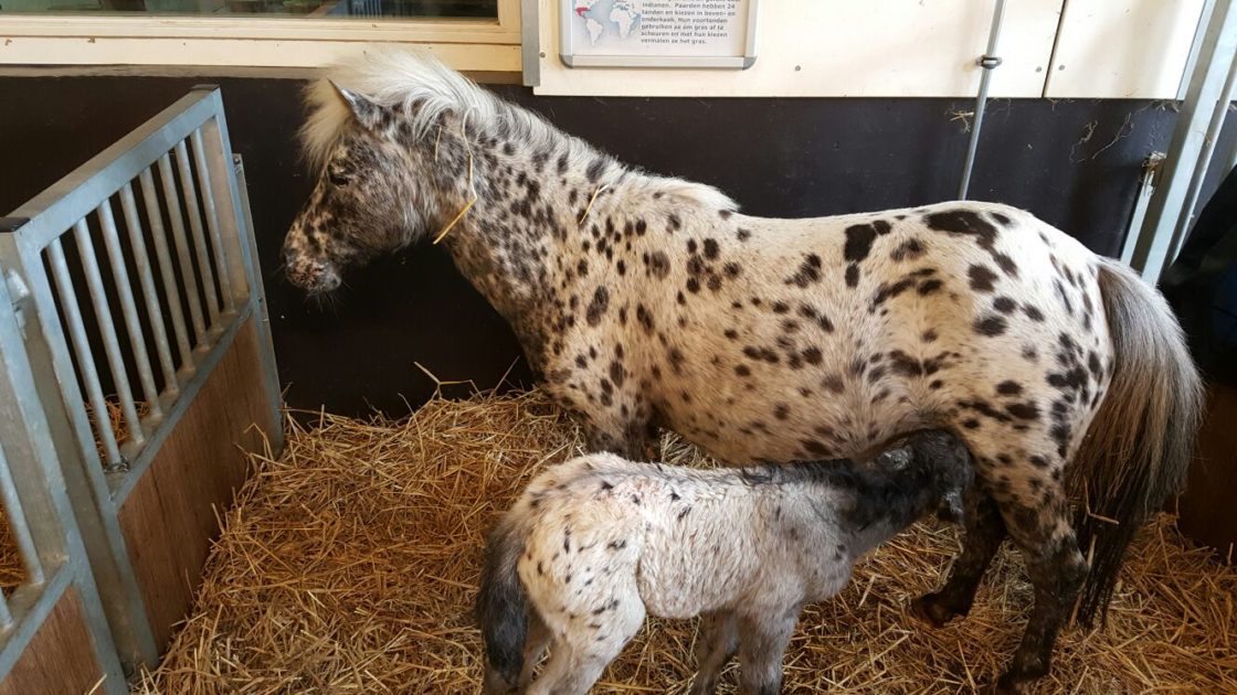DORDRECHT – Heel de vroeg in de (woensdag)ochtend is minipaardje Silver bevallen van een hengstveulen. Zij heeft dit geheel op eigen kracht gedaan. Zowel Silver als haar veulen maken het goed en zijn te bezoeken in de stallen van de Stadsboerderij.